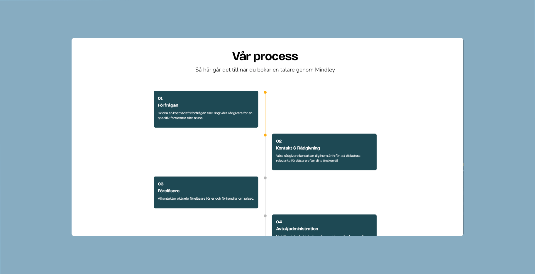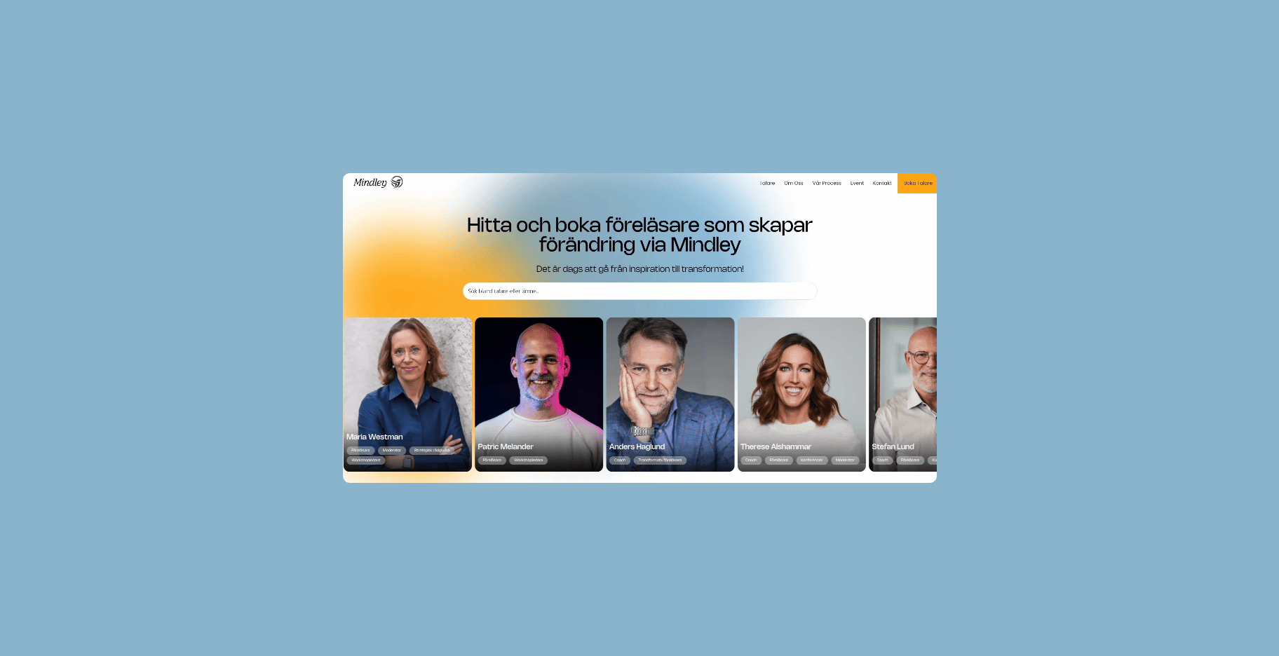 Mindley behövde en digital lösning som matchar deras idé: att göra det enkelt för företag att upptäcka, jämföra och boka föreläsare online. Utmaningen låg i att kombinera ett innehållsrikt innehåll med ett användarflöde som är både snabbt och konverterande. Webbplatsen skulle bygga förtroende direkt, och driva till handling.